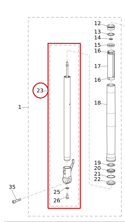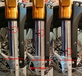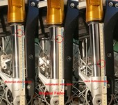 Ich bin mit der Abstimmung der Vorderradgabel unzufrieden. Die ist bestimmt für schwerere Fahrer und wohl auch für 2 Personen Betrieb gedacht. Ich fahre aber nur alleine und finde die Gabel dafür zu hart. Ich wiege "fahrbereit" nur 76 kg und das fahrbereite Motorrad wiegt nur 150 kg. Im Internet liest man zum Thema Fahrwerk und Federung immer, der negative Federweg sollte mindestens 1/3 des gesamten Federwegs sein. Das wären dann 5 cm. Im Handbuch der "Rally" steht zum Thema Fahrwerkseinstellung sogar:"Die Standard-Einstellung der Stoßdämpfer beträgt 50 % des Federwegs.". Meine Scrambler taucht aber nur 15 mm ein, wenn ich drauf sitze und es gibt leider keine Einstellmöglichkeit mit der man die Vorspannung verringern könnte. Der negative Federweg ist fast nicht vorhanden. Und der ist eigentlich wichtiger als der positive Federweg. Wenn man bei Bodenwellen oder Löchern keinen Federweg zum Einfedern hat, dann haut es einem nur ins Kreuz aber die Räder bleiben am Boden. Wenn in Schräglage eine Bodenwelle oder ein Loch kommt und man hat keinen negativen Federweg zum Ausfedern, dann rutscht das Rad weg und man liegt auf dem Kreuz. Deswegen will ich die Federvorspannung verringern oder eine kürzere Feder einbauen.