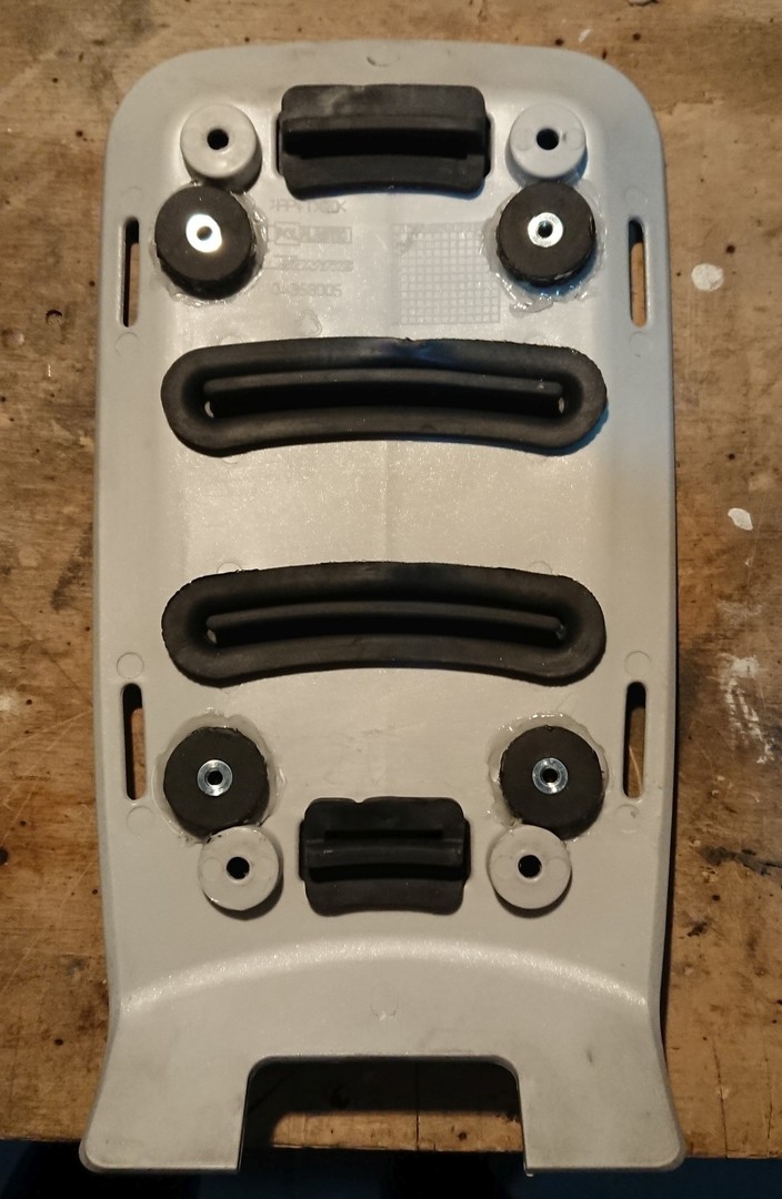 Deswegen habe ich mir was mit 8 Neodym Magneten 22mm Durchmesser mit M4 Gewinde, Haftkraft 3kg, gebastelt. Das funktioniert gut. 4 Magnete unter die Tanktasche geschraubt und 4 Magnete unter die Tankabdeckung geklebt. Damit die Gummirippen drauf bleiben können, habe ich in die Tanktasche neue Löcher gebohrt. Die Magnete sind gummiert, zum Schutz der Tankabdeckung vor Kratzern. Jetzt kann man die Tanktasche wie eine Art "Herrenhandtasche" mitnehmen. ![]() ![]() ![]() ![]() ![]() Die 8 Neodym Magnete sind zwar etwas teuer. Aber wenn ich die Tasche während der Fahrt verlieren sollte, dann sind eine Menge wichtige Sachen weg und der Ärger groß. Packtasche mit Befestigung an der Sitzbank (01.02.2024)