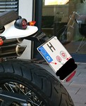 ![]() ![]() PS: 26.10.2022. Leider waren meine Leichtbau Bestrebungen zu radikal. Das dünne Blech des Kennzeichens hat es überhaupt nicht gemocht, nur an 3 Punkten befestigt zu sein. Und dann auch nur oben und in der Mitte. Die Unterkante hat wohl sehr stark vibriert oder der Fahrtwind war einfach zu stark. Der Riss an der mittleren Schraube wurde immer länger. Ich hatte noch einen Rest von der PP Platte, mit der ich die Luftfilteraufnahme für den K&N Filter modifiziert hatte. Damit habe ich eine Verstärkung für das Kennzeichen gebaut, die auch gleichzeitig den Rückstrahler hält. Weil der Halter dadurch nun wieder schwerer geworden ist, habe ich am Alu Blech etwas Gewicht durch Bohrungen und Ausschnitte eingespart. Ist jetzt insgesamt wieder 70 Gramm schwerer aber immer noch 141 Gramm leichter als das Originalteil. ![]() ![]() ![]() PS: 18.08.2025. Beim Tausch der Schrauben an den Scheinwerferhalterungen und den Gabelprotektoren bin ich auf noch mehr Schrauben gestoßen, die man gefahrlos mit Aluminium Schrauben ersetzen kann. Die 4 Schrauben am Kennzeichen gehören auch dazu, noch mal 15 Gramm leichter. Befestigungsplatte Kennzeichenträger aus Alu (01.09.2023)