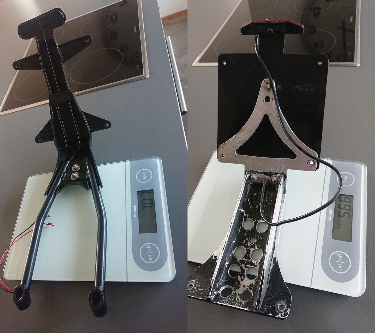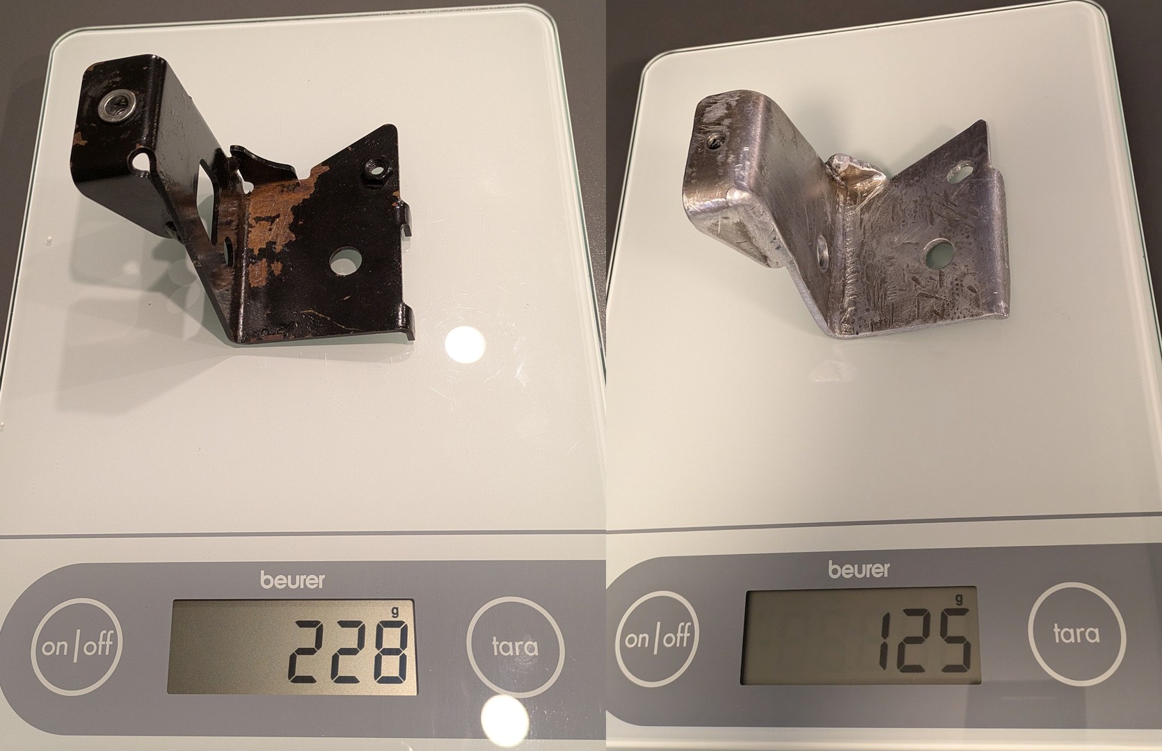 ![]() ![]() 103 Gramm eingespart. Naja, nicht die Welt aber das basteln hat halt Spaß gemacht. Draußen hat es eh geregnet und die originale Halterung war auch rostig. |
