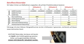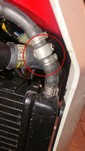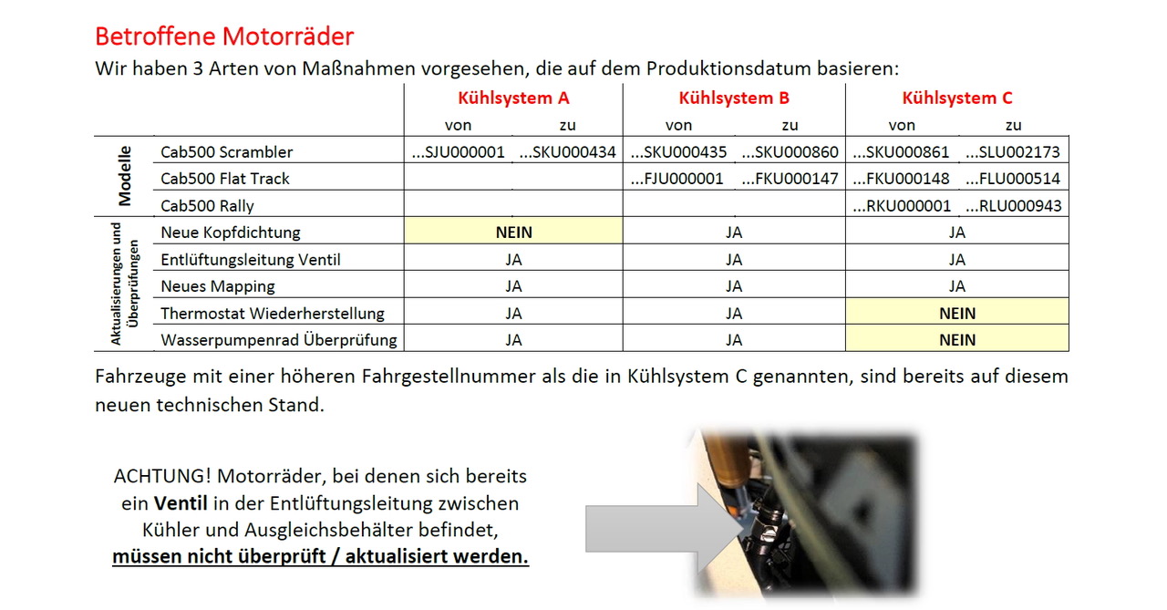 Ohne Thermostat fahre ich nicht gern (siehe oben). Im Internet fand ich dann in einem Forum die Info, dass es einen Rückruf von Fantic gibt zwecks Modifikation des Kühlsystems. Ich habe sofort meinen Händler kontaktiert. Die wussten zwar von nichts, wollten sich aber erkundigen. Zwei Tage später riefen Sie zurück und wir haben einen Werkstatttermin vereinbart. Ich habe jetzt auch dieses Ventil im Kühlerüberlauf und einen neuen Thermostat drin, der voll öffnen kann. Der fehlerhafte Thermostat soll zu groß gewesen sein und konnte nicht voll öffnen, weil er an das Gehäuse stieß. Das Ventil im Schlauch vom Ausgleichsbehälter zurück zum Kühler ist nur ein Sperrventil (Auf/Zu) für Befüllung und Entlüftung des Systems. Im Betrieb muss es immer zu sein, damit sich Druck im Kühlkreis aufbauen kann und die Gefahr des Kochens reduziert wird.