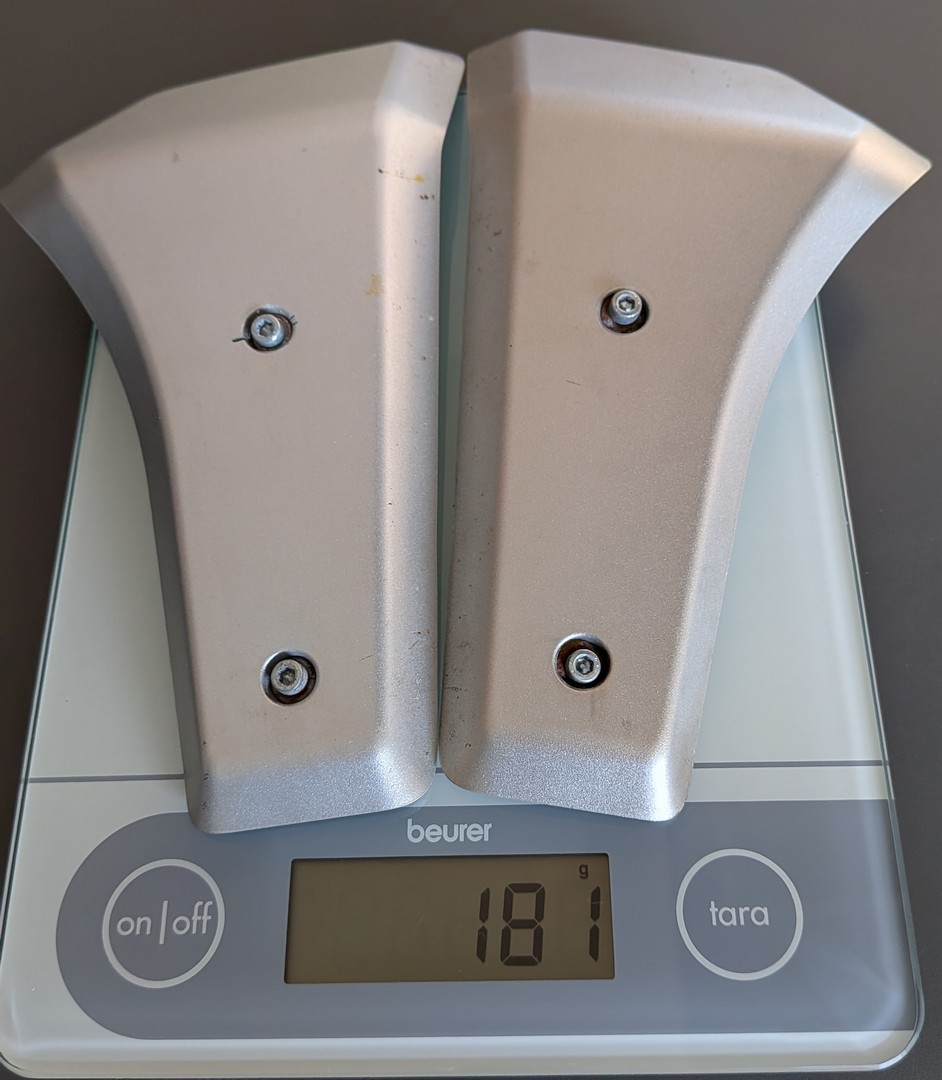 Da bin ich erst mal ein paar Schritte zurück und habe mir das angeschaut. Und Sie hat Recht. Es sieht ganz ohne viel besser aus, finde ich auch. Die Caballero ist so ein schönes puristisches naked bike im retro Stil. Da darf nichts verkleidet sein. Und die Dinger sind wirklich nur Verkleidungen. Haben keinen Nutzen in Bezug auf Luftführung und Kühlung. Die sollten bestimmt nur den schweinchenrosa Ausgleichsbehälter verstecken. Jetzt kommt der schöne Einzylinder viel mehr zur Geltung. ![]() ![]() ![]() Ich habe die Abdeckungen weggepackt. Ist auch gleich wieder 181 Gramm leichter. In die Schraubenlöcher am Kühler habe ich Kunststoffnieten gesteckt. |