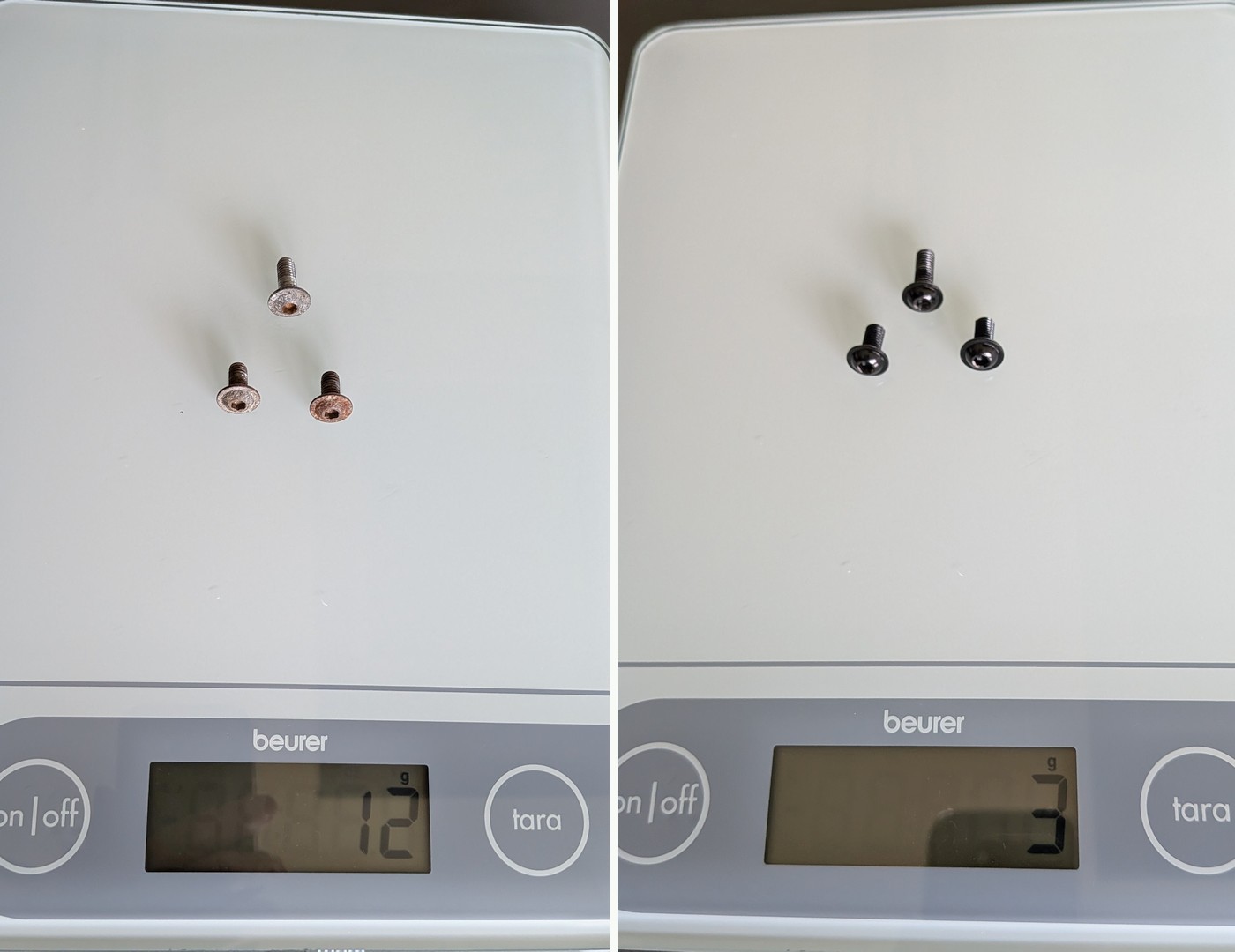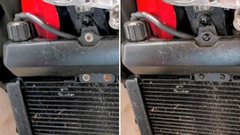 ![]() ![]() ![]() ![]() Zum Abbauen des Behälters musste ich natürlich etwas Kühlflüssigkeit ablassen. Das geht am besten an der untersten Schraube des Wasserpumpendeckels. Die hat eine Dichtung und scheint die Ablassschraube zu sein. PS: 13.01.2022.Die Sprühfolie hat leider doch nicht gehalten. Es fing erst mit kleinen abgeplatzten Stellen an, wo wohl Steinchen oder Insekten eingeschlagen sind. Dann lösten sich immer größere Teile ab. Die Sprühfolie ist dafür gedacht, dass man die wieder abziehen kann. Das will ich aber überhaupt nicht. Das Teil soll dauerhaft schwarz bleiben. Jetzt habe ich ein spezielles Lackierset für Kunststoff genommen. ![]() PS: 19.12.2022.Sieht nach einem Sommer und über 5.000 km immer noch gut aus. PS: 11.08.2025.Was aber nach sechs Jahren nicht gut aussieht, sind die Schrauben, mit denen der Ausgleichsbehälter befestigt ist. Die habe ich mit schwarz eloxierten Schrauben aus Alu ersetzt, die ich noch über hatte von der Umrüstung der Gabelprotektoren. Da hatte ich gleich ein paar mehr bestellt. Das gleicht das Gewicht von Grundierung und Lack bestimmt aus. Die sind doch deutlich leichter und bei solchen Anbauteilen muss man sich keine Sorgen machen wegen der Stabilität. ![]() ![]() Rückruf Modifikation Kühlsystem (14.10.2020)