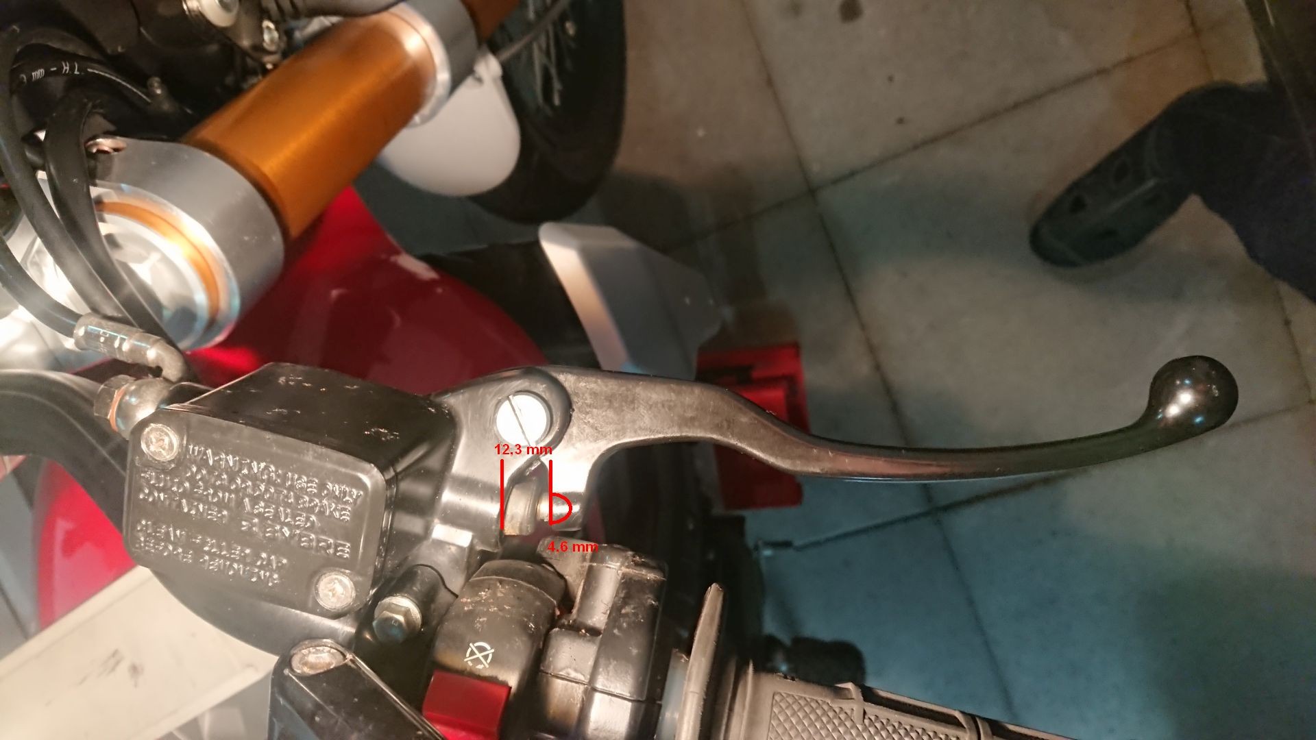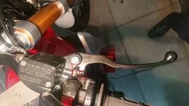![]() ![]() Auf der Kupplungsseite ist der Umbau eine Minutensache. Die Kupplung lässt sich damit wirklich leichter betätigen. Ist anscheinend irgendwie eine bessere Hebelwirkung. Übrigens Kupplung und Leerlauf: Ich hatte die Kupplung nach der Umrüstung sehr lasch eingestellt, den Raximo Hebel ganz nah am Lenker, damit ich nicht so weit greifen muss. Da ging der Leerlauf bei laufendem Motor überhaupt nicht mehr rein. Den Seilzug am Lenker 2 Umdrehungen weiter gespannt und den Hebel wieder etwas weiter weggestellt, schon flutsche der Leerlauf wieder super leicht rein. Beim Bremshebel sollte es durch die Hydraulikbetätigung noch leichter sein aber leider gab es Probleme. Nach einigen Kilometern merkte ich, dass der Druckpunkt sich veränderte, er wurde immer strammer. Anscheinend war die Bremse immer leicht gedrückt und schleifte. Dadurch hat sich alles erhitzt und die Ausdehnung bewirkte, dass der Hebelweg immer kürzer wurde. Im Internet las ich Beiträge, wo es dadurch zum Blockieren des Vorderrads gekommen sein soll. Kann ich mir eigentlich nicht vorstellen, das ABS müsste da vorher die Ventile öffnen, aber wer weiß. Auf jeden Fall musste ich da nacharbeiten. Der originale Bremshebel ließ dem Kolben der Bremspumpe 16,9 mm Platz. Der Raximo Hebel ließ da nur 16,6 mm. Das war wohl das Problem. Ich habe die Einbuchtung im Raximo Bremshebel etwas nachgefräst, danach trat das Problem nicht mehr auf. Ich bin voll und ganz zufrieden mit den Hebeln. ![]() ![]() Neue Gummigriffe angebaut (13.03.2025)