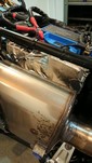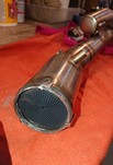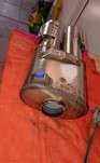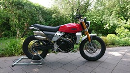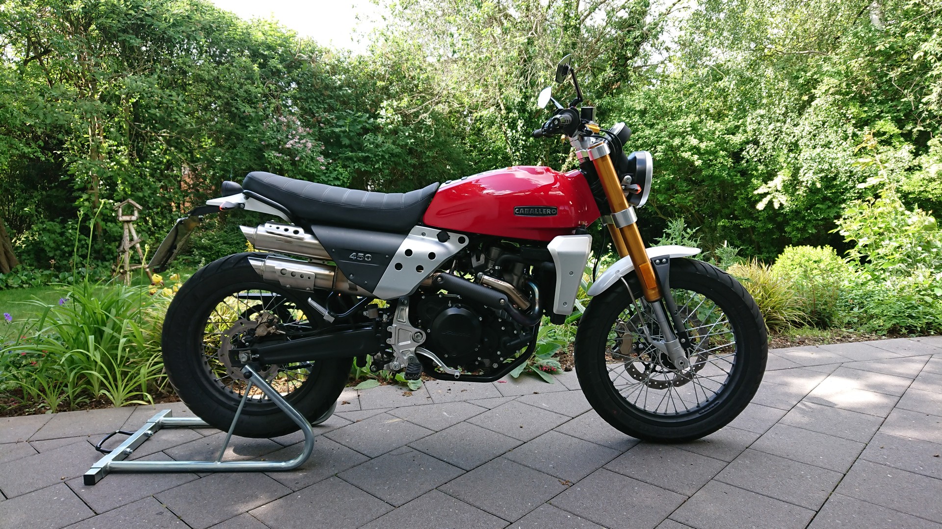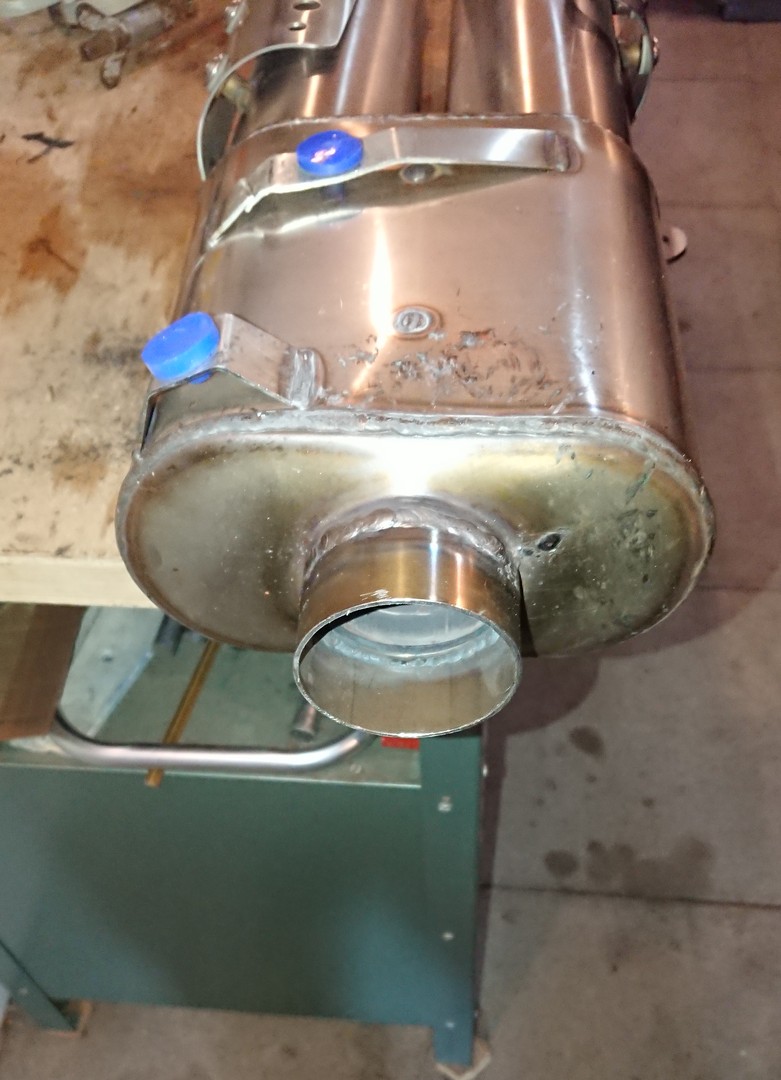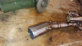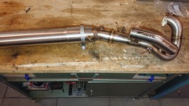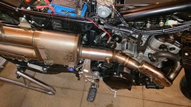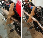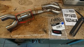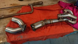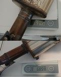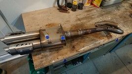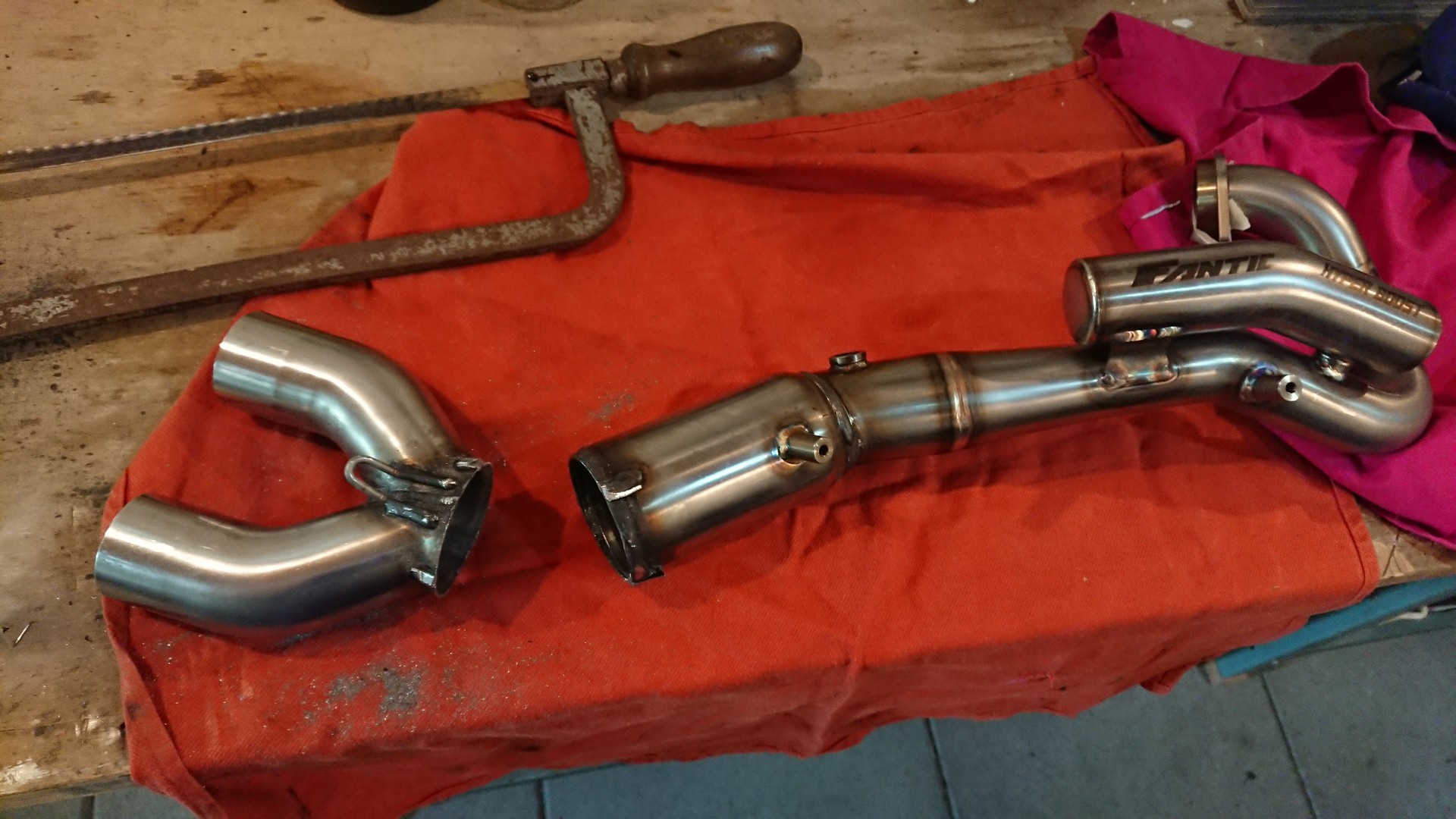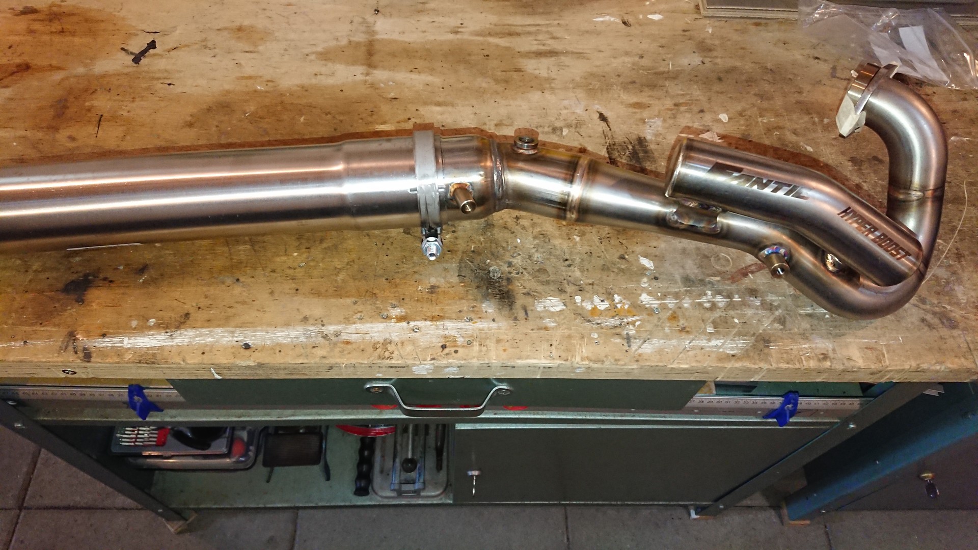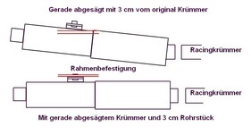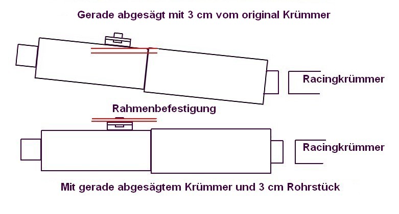 Das ist er, der Racing Krümmer. Dieses "komische" Zusatzrohr soll die Lautstärke der Schalldämpferanlage um bis zu 2 dB reduzieren. Der Helmholtzresonator genannte Effekt erzeugt durch die an der Verbindungsöffnung vorbei strömenden Verbrennungsgase eine Schwingung, ähnlich wie das Anblasen an einem Flaschenhals. Diese Schwingungen und die Verbrennungsgeräusche heben sich teilweise gegeneinander auf. Außerdem soll das Volumen des Zusatzrohrs dafür sorgen, dass der Gegendruck des Schalldämpfers etwas gesenkt wird. Beim Ausstoßen der Verbrennungsgase nimmt das Rohr einen Teil der Gase auf, wenn diese durch den Schalldämpfer am freien Austreten gehindert werden. In den restlichen 3 Arbeitstakten des Motors, wenn im Auspuff nichts los ist, wird der Druck dann wieder abgebaut. Mit entsprechenden Steuerzeiten der Ventile kann das für zusätzliche Leistung sorgen. Im Bahnsport sind diese Power-Bomb Auspuffkrümmer bei 250er und 500er Einzylinder Motoren weit verbreitet. Und der Kat ist deutlich größer als der Originale an meiner E4 Scrambler. Da müssen die Abgaswerte eigentlich noch besser sein. Der Schalldämpfer mit zweitem Kat ist ja unverändert. Aussenmaße Katalysator Racing Krümmer : 100 * 63 mm = 312 cm³ Aussenmaße Katalysator original Krümmer: 130 * 46 mm = 216 cm³ ![]() ![]() Mit der Eisensäge habe ich das Y-Stück gerade neben der Schweißnaht abgesägt, um den Kat nicht zu beschädigen. Mit Winkelschleifer und Schruppscheibe den Schnitt gerade gemacht, dann mit der Fächerscheibe 120er Körnung geglättet und die Schweißnaht entfernt. ![]() ![]() ![]() Das Edelstahlrohr mit Steckmuffe hab ich hier bestellt. Die Bandklammer habe ich nur zur Sicherheit mitbestellt, wollte ich eigentlich nicht benutzen, weil zu schwer. ![]() Bevor ich den Auspuff zersäge, habe ich lieber noch mal geschaut, wo der Racing Krümmer hinführen muss. Schnell eine Schablone aus Pappe gebastelt und markiert, wo gesägt wird. Dann den Auspuff abgebaut, den Racing Krümmer montiert, das Edelstahlrohr mit der Steckmuffe aufgesteckt und die Schablone angehalten. Scheint zu passen. Übrigens auch ein schönes Auspuff"Rohr" (im wahrsten Sinne des Wortes), oder? ![]() Jetzt ist es passiert, der Auspuff ist zersägt. Ebenfalls mit der Eisensäge getrennt, dann mit Winkelschleifer und Schruppscheibe den Schnitt gerade gemacht. Jetzt den Racing Krümmer und den Auspuff angeschraubt, um zu sehen, wieviel fehlt. Dann das Rohr mit der Aufsteckmuffe auf die passende Länge abgesägt (3 cm fehlten) und aufgesteckt. Dann noch mal alles zusammengeschraubt und: Passt! ![]() ![]() Das Stück Rohr mit der Steckmuffe habe ich zuhause nur angeheftet, schweißen habe ich im Fachbetrieb im Nachbardorf machen lassen. Ich habe nur einen Elektro-Brutzler, kein Schutzgas. Hat 30,- € gekostet. ![]() Die Maschine läuft nun mit dem normalen Mapping wie bisher, nicht besser und nicht schlechter. Der Auspuff ist nun ca. 350 Gramm leichter. Etwas leiser ist die Maschine auch geworden. Und da der Kat im Racing Krümmer größer ist als der Kat im originalen Krümmer, müsste auch der Schadstoffausstoß niedriger sein als vorher. Und besser sieht Sie auch aus: ![]() ![]() Ich habe den Sound mal per Handyvideo und Schallmessung per App festgehalten. Ist natürlich nicht geeicht oder irgendwie genormt. Nur mal so, als vergleichende Messung. Erst mit dem originalen Krümmer, dann nach dem Umbau. Bei Testfahrten habe ich dann festgestellt, dass nun deutlich mehr Wärme unterm Popo ankommt. Die Donut-förmige Schleife des originalen Krümmers hat doch eine ganze Menge Wärme abgeführt. Der Racing Krümmer sorgt dafür, dass das Abgas heißer am Schalldämpfer ankommt. Die untere Halterung am rechten Seitendeckel ist mir gleich weggeschmolzen. Das habe ich aber mit einer der Spezialschrauben für den Hitzeschutz am Krümmer in den Griff gekriegt. ![]() Wegen der stärkeren Wärmeentwicklung habe ich die Hitzeschutzfolie im Seitendeckel ersetzt. Die war sowieso schon ganz schön zerfleddert. Da habe ich das hier genommen: Hitzeschutzmatte. Damit habe ich auch gleich noch die Seite zur Batterie abgeklebt. Habe ja eine Lithium Batterie, die sind etwas empfindlicher gegen Wärme. ![]() ![]() Im Fahrbetrieb hat sich dann leider auch gezeigt, dass das mit der Steckmuffe nicht so gut war. Es war nicht dicht. Die Steckmuffe ist für 2,5 Zoll Rohr (63,5 mm), das Rohrstück mit dem Kat. hat aber nur knapp 63 mm. Dünnes Blech dazwischen fummeln war Murks und die letztendlich doch benutzte Bandschelle zog die stabile Steckmuffe nicht genug zusammen. Ich habe die Steckmuffe jetzt abgesägt und alles verschweißen lassen. Jetzt ist der ganze Auspuff ein halbes Kilo leichter als original. Und die Steckmuffe war sowieso sinnlos. Aufgrund des anderen Abgangswinkel des originalen Krümmers, hätte man den da sowieso nicht aufstecken können. Der hätte dann am Motor vorbei gezeigt. ![]() ![]() ![]() ![]() Man braucht also nur ein 3 cm langes Stück Edelstahlrohr 2,5 Zoll, um die Lücke zwischen abgesägtem Racing Krümmer und abgesägtem Schalldämpfer zu überbrücken. Bei dieser Art des Umbaus mit gerade am Schalldämpfer abgesägtem Krümmer und 3 cm Rohr zur Überbrückung der Lücke zum Racing Krümmer bleiben alle 3 Befestigungspunkte des Seitendeckels am Schalldämpfer intakt und alles passte noch. Der Nachteil ist natürlich, dass man zweimal schweißen muss. Aber die eine Schweißnaht am Schalldämpfer für das 3 cm Rohrstück kann man auf der Werkbank machen. Das passt ohne "anprobieren" am Fahrzeug. Das Rohrstück wird einfach nur gerade am Schalldämpfer angeschweißt. Für die zweite Schweißnaht muss man allerdings am Fahrzeug heften, damit der Racing Krümmer richtig gedreht verschweißt wird. Neue Krümmer Dichtung angebaut (08.10.2024)