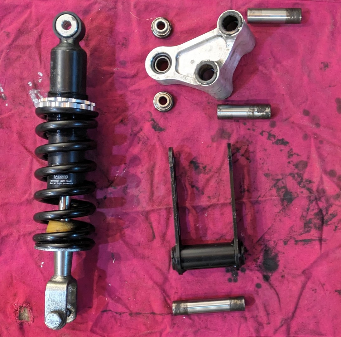 Eigentlich wollte ich mir nur mal die Gleitlager der Umlenkhebel des Federbeins anschauen. Die sahen vor eineinhalb Jahren schon ziemlich angefressen aus.