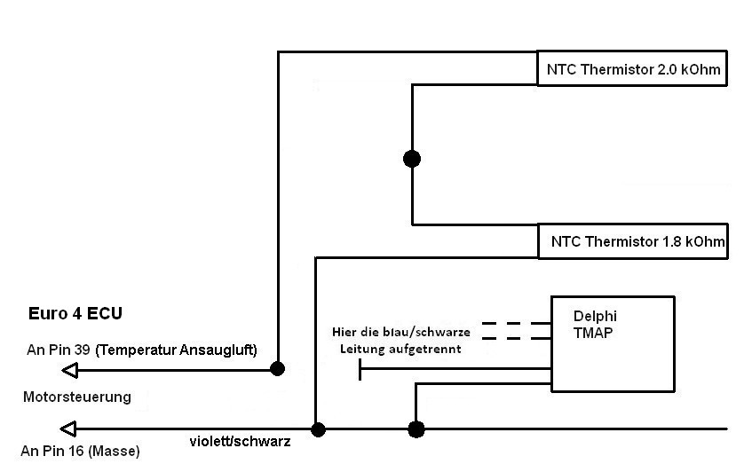 Delphi TMAP getrennt, externe NTC 2 kΩ + 1.8 kΩ angebaut (02.08.2021)
