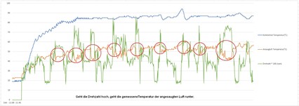 Mit Beendigung der Einfahrzeit hatte ich den zusätzlichen 2 kΩ NTC-Temperatursensor wieder dazugeschaltet und war irgendwie nicht zufrieden mit dem Ergebnis und dem Motorlauf.